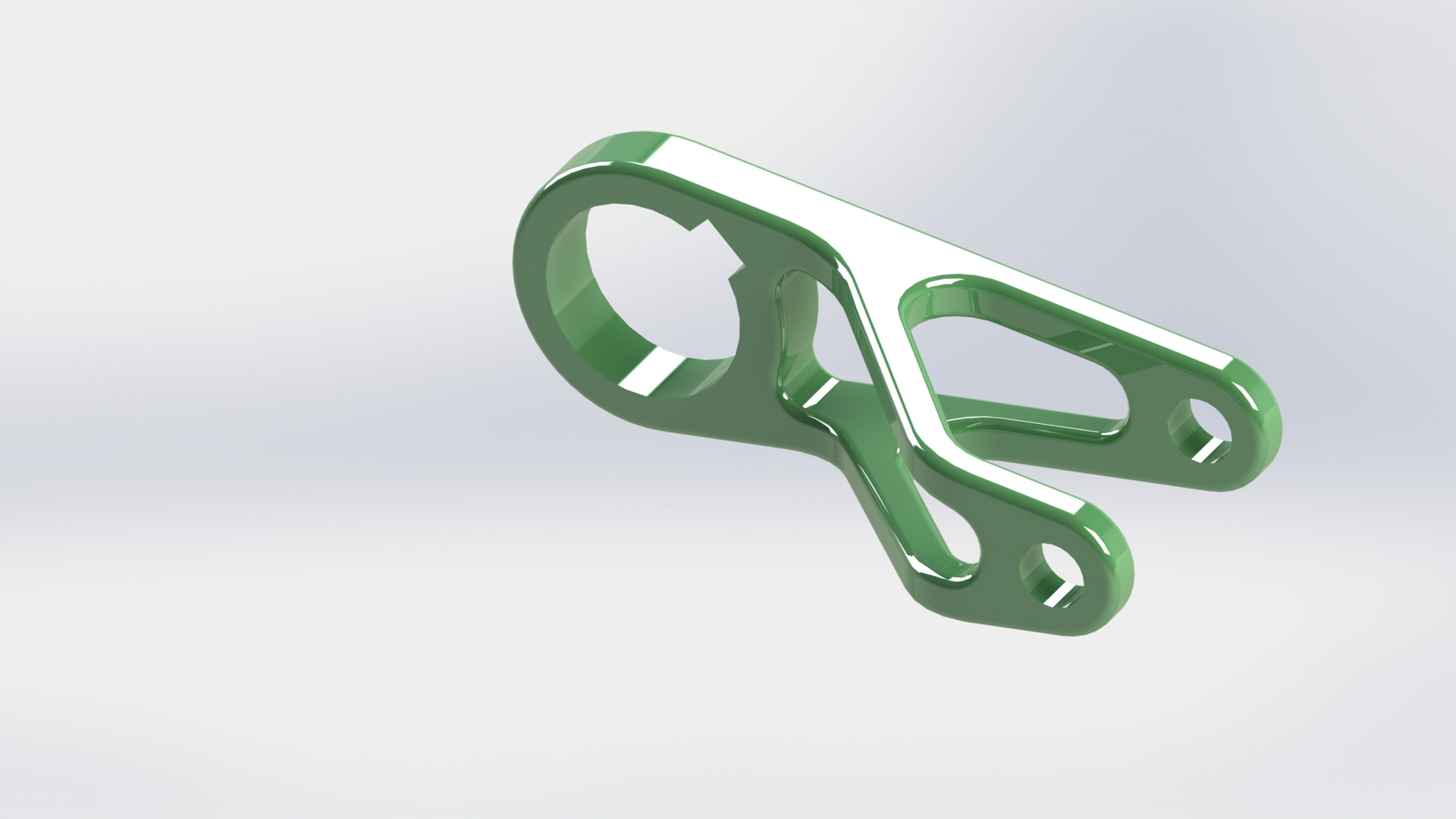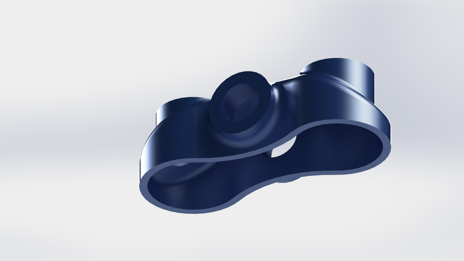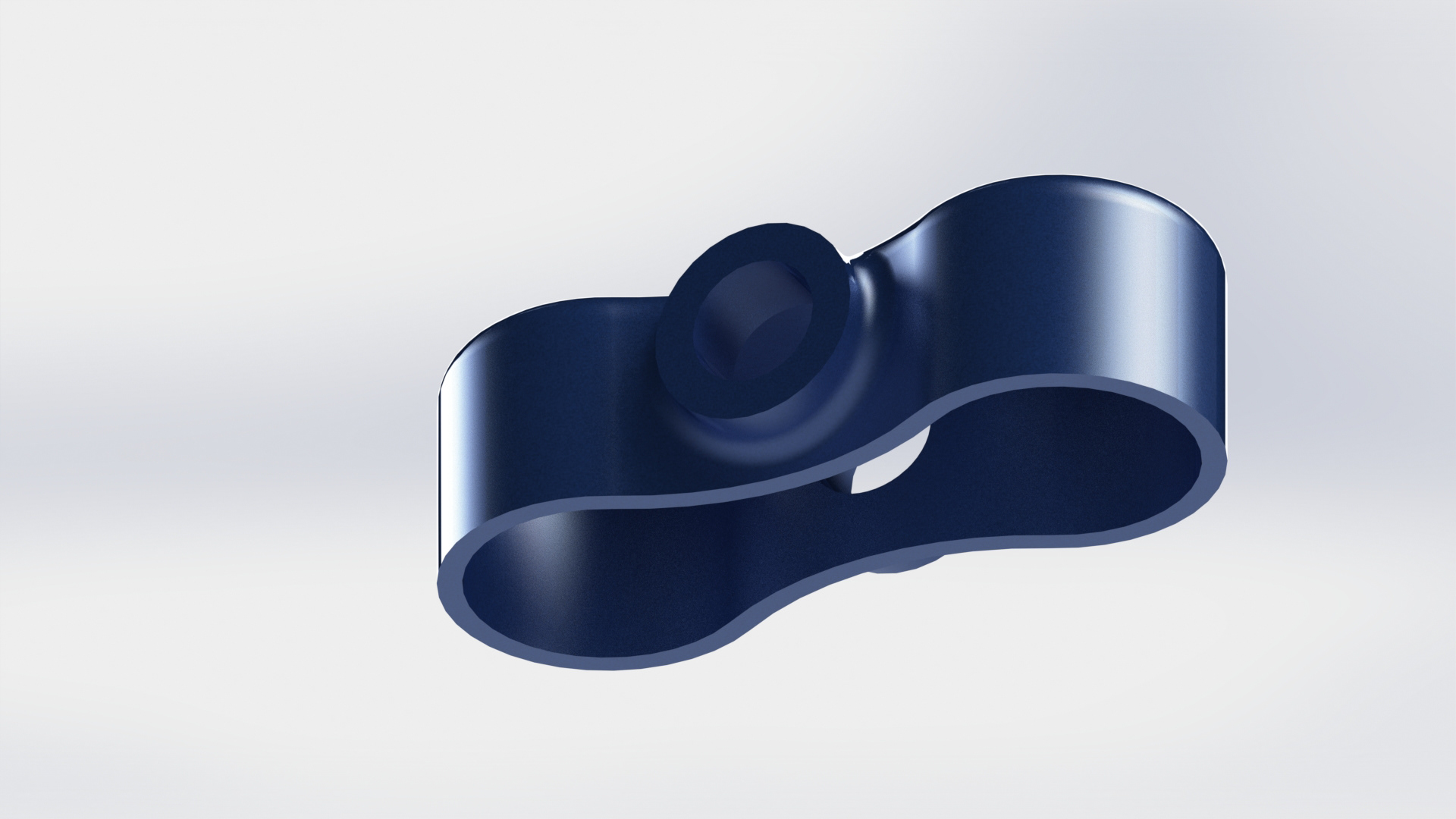 The 2018 model is very reminiscence of a horseshoe. Phase 1 took about 30 minutes to create. The main horseshoe shape was made with an extrusion and extruded cut in perpendicular planes (front and right, respectively). Next the top circular profile and hole were made with extrusions from the top plane. Phase 2 moved one of the curves in the main body as well as integrating a shell into the same body. These changes took about 20 minutes including tweaking the circle at the top to go through the now longer body.